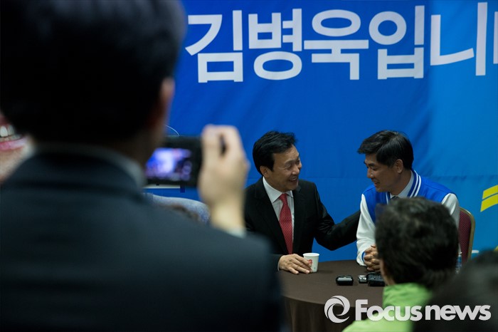(성남=포커스뉴스) 손학규 전 더불어민주당 상임고문이 30일 오후 경기도 성남시 김병욱 더민주당 분당을 후보 선거사무소을 방문해 김후보와 이야기를 나누고 있다.