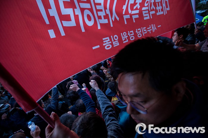 | △ 대표직 사퇴 촉구하는 이재만 지지자들 |