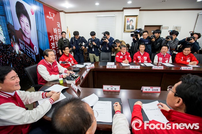(대구=포커스뉴스) 김무성 새누리당 대표가 30일 오후 대구 수성구 새누리당 대구시당에서 열린 '선거대책위원회의'에 참석해 모두발언 하고 있다.