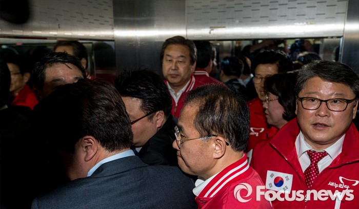 (대구=포커스뉴스) 김무성 새누리당 대표가 30일 오후 대구 수성구 새누리당 대구시당에서 열린 '선거대책위원회의'를 마친 뒤 엘리베이터를 탑승 하고 있다.