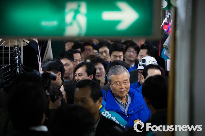 (서울=포커스뉴스) 김종인 더불어민주당 대표가 4.13총선 공식선거운동 첫날인 31일 오전 서울 중구 동대문에 위치한 한 쇼핑몰에서 상인들을 상대로 선거운동을 하고 있다.