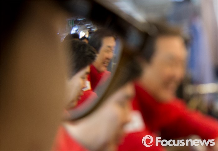 (서울=포커스뉴스) 4.13총선 공식선거운동 첫날인 31일 오전 서울 중구 동대문 누죤에서 김무성 새누리당 공동선대위원장이 지상욱 서울 중구성동구을 후보와 선거운동을 하고 있다.