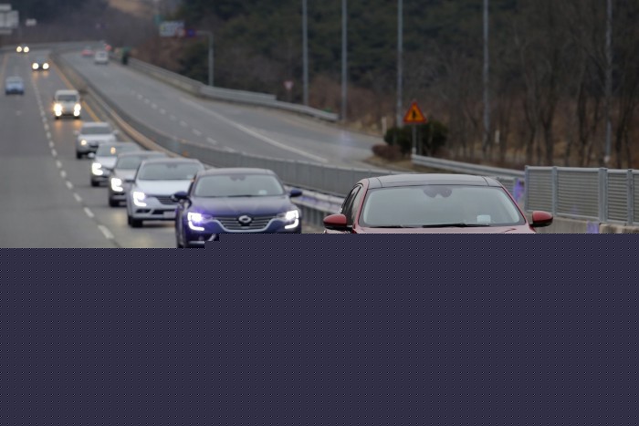 한편 SM6 트림별 판매비중에서 고급 트림인 RE가 절반 이상을 차지하면서 수입차로 발길을 돌리던 30~40대 구매자들에 어필하고 있다는 게 회사측 분석이다.전국 로드쇼에 나선 SM6 차량이 고속도로를 달리고 있다. <사진제공=르노삼성자동차>