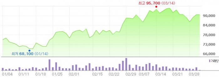 김 연구원은 "상반기 출시되는 신작 게임의 글로벌 성과가 크게 나타난다면 추가적인 실적 상향이 가능할 것"이라며 "2분기에는 MLB퍼팩트이닝, 마스커레이드, 나인하츠 등의 출시가 예정돼 있다"고 설명했다.최근 3개월간 게임빌 주가 추이 <그래픽출처=네이버>