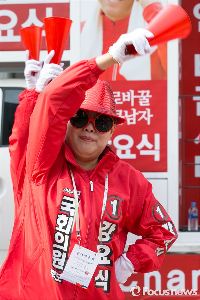 (서울=포커스뉴스) 4.13 총선 공식선거운동이 시작된 31일 오전 서울 구로구 구로디지털단지역 인근 한 대형마트 앞에서 강요식 새누리당 구로을 후보 선거운동원들이 지지를 호소하고 있다.
