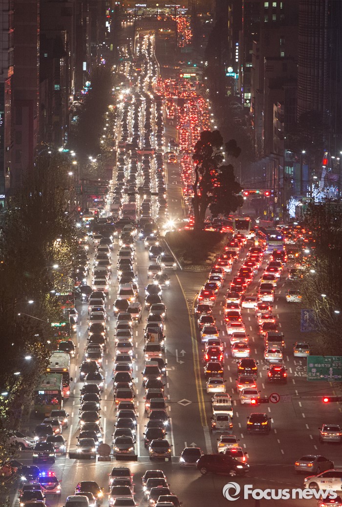 | △ 성탄절 앞둔 퇴근길, 반포대로 교통정체 |