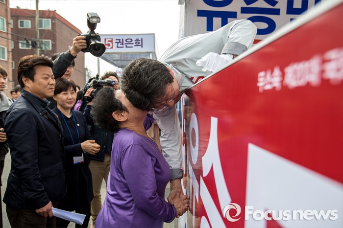 (대구=포커스뉴스) 무소속 대구 동구을 유승민 후보가 31일 오전 대구 동구 공항교에서 열린 선거운동 출정식에 참석해 지지자와 대화를 나누고 있다.
