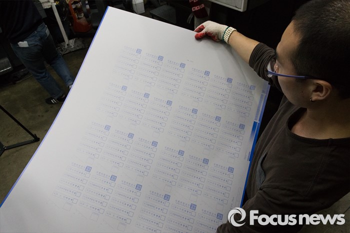 (파주=포커스뉴스) 제20대 총선 선거운동이 공식적으로 시작된 31일 오전 경기도 파주 한 인쇄소에서 직원이 투표용지 평판을 확인하고 있다.