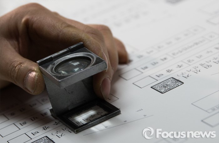 (파주=포커스뉴스) 제20대 총선 선거운동이 공식적으로 시작된 31일 오전 경기도 파주 한 인쇄소에서 직원이 투표용지 교열작업을 하고 있다.