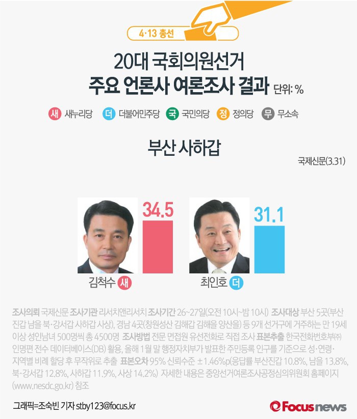 | △ [그래픽] 4.13총선 부산 사하갑 여론조사 결과 |