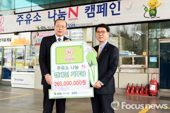 류열 S-OIL 사장은 이날 서울 여의도 경일주유소에서 열린 ‘S-OIL 주유소 나눔 N 캠페인’ 기부금 전달식에서 차흥봉 한국사회복지협의회 회장에게 후원금 2억6000만원을 전달했다.