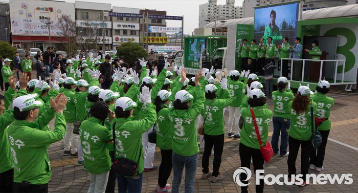(대전=포커스뉴스) 31일 오후 대전 서대전역광장에서 열린 대전 국민의당 국회의원 후보자 출범식에서 후보자들이 지지를 호소하고 있다.