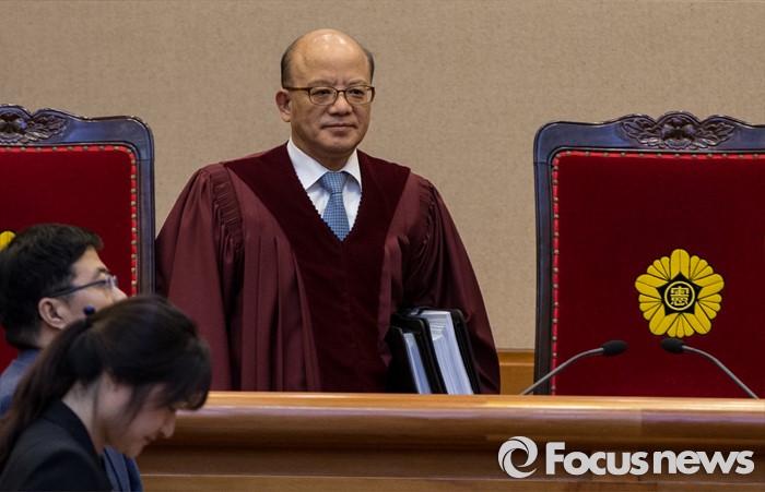 | △ 심판정 들어서는 박한철 헌재소장 |