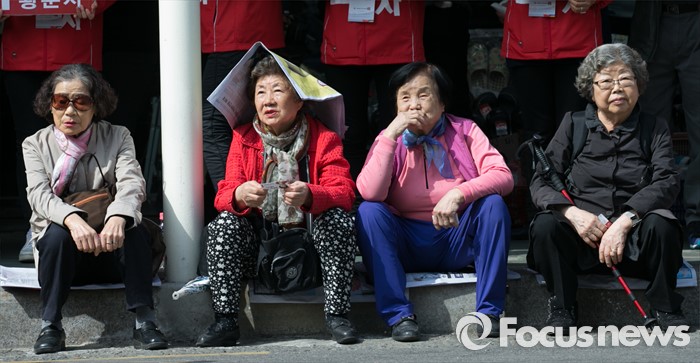 (서울=포커스뉴스) 4.13 총선 공식선거운동이 시작된 31일 오후 서울 용산구 후암시장 앞에서 어르신들이 황춘자 새누리당 용산 후보의 유세를 보고 있다.