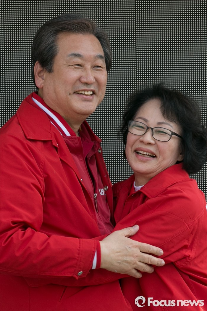 (서울=포커스뉴스) 4.13 총선 공식선거운동이 시작된 31일 오후 서울 용산구 후암시장 앞에서 김무성(왼쪽) 새누리당 대표와 황춘자 용산 후보가 유세를 마친 뒤, 포옹하고 있다.