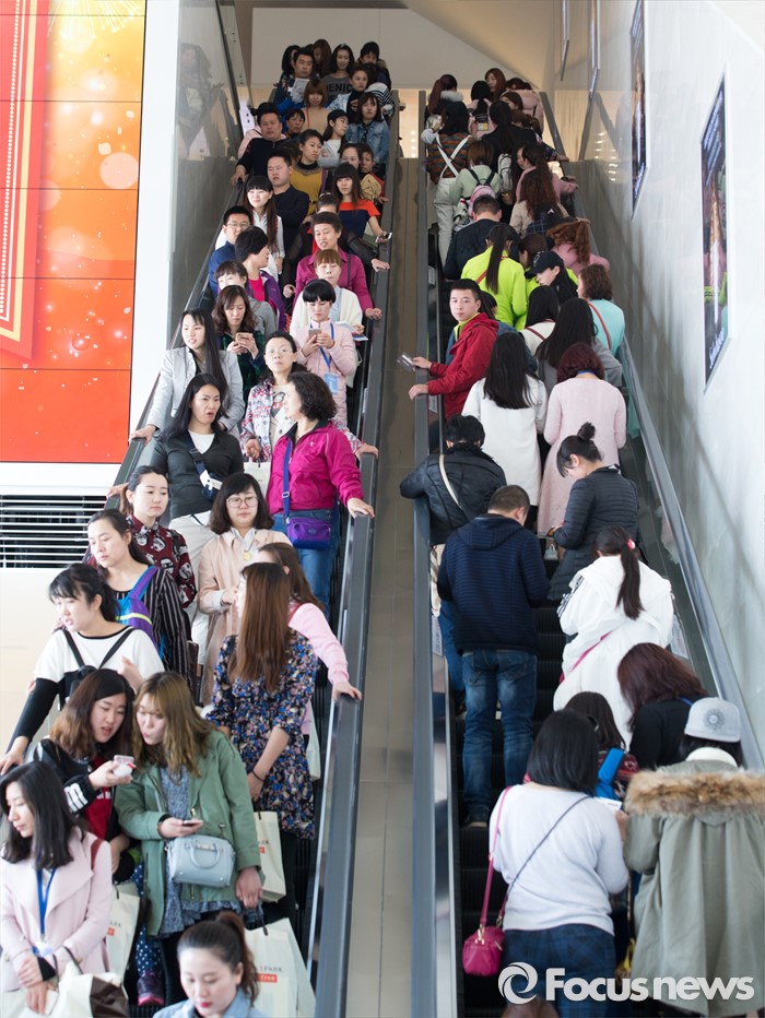 (서울=포커스뉴스) 31일 오후 서울 용산구 신라아이파크면세점 입구가 중국 아오란 그룹 임직원들로 북적이고 있다.