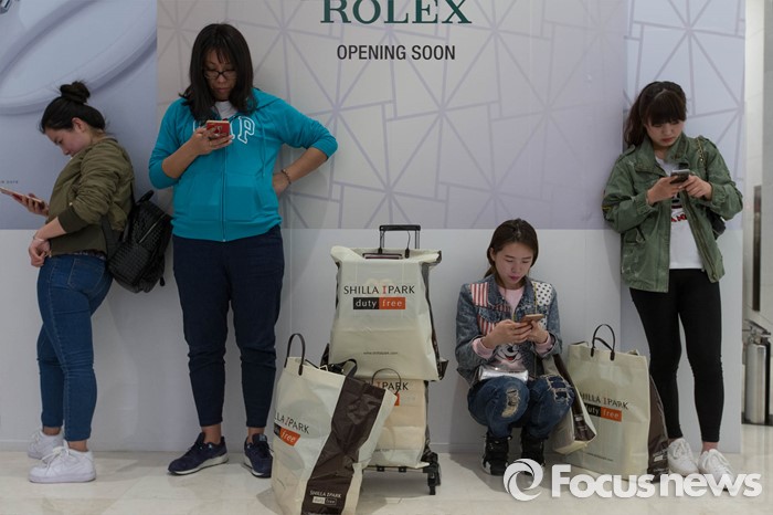 (서울=포커스뉴스) 한국을 방문 중인 중국 아오란 그룹 임직원 6000여 명이 31일 오후 서울 용산구의 한 면세점을 찾아 쇼핑한 뒤 휴식하고 있다.