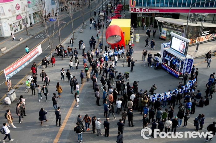 | △ 신촌 유플레스 앞 더민주 유세 |