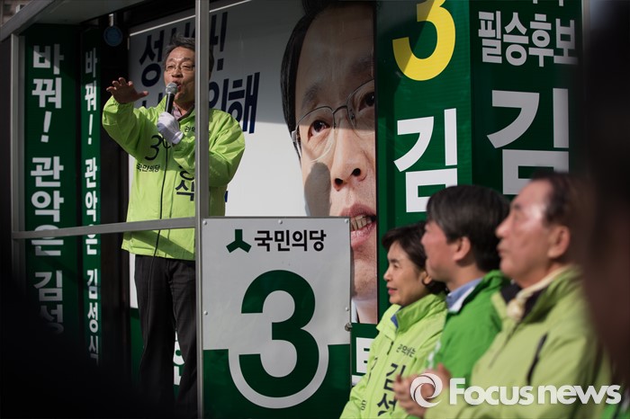 (서울=포커스뉴스) 총선 선거운동이 공식적으로 시작된 31일 오후 김성식 국민의당 관악갑 후보가 서울 관악구 관악플라자 앞에서 선거 유세를 하고 있다.