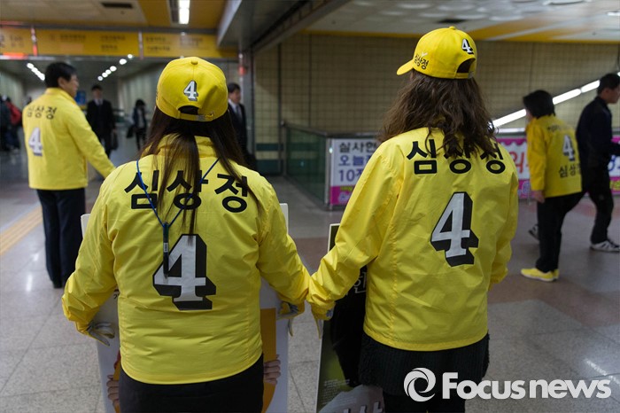 (고양=포커스뉴스) 1일 오전 고양시 덕양구 삼송역에서 심상정 정의당 대표 고양갑 후보가 출근길 선거유세를 하고 있다.
