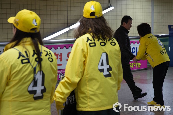 (고양=포커스뉴스) 1일 오전 고양시 덕양구 삼송역에서 심상정 정의당 대표 고양갑 후보가 출근길 선거유세를 하고 있다.
