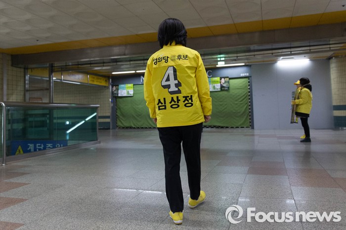 (고양=포커스뉴스) 1일 오전 고양시 덕양구 삼송역에서 심상정 정의당 대표 고양갑 후보가 출근길 선거유세를 하고 있다.