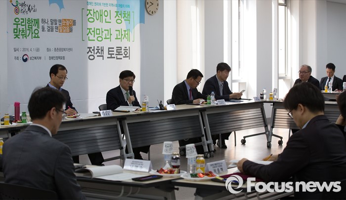 (세종=포커스뉴스) 정진엽 보건복지부장관이 1일 오전 세종시 종촌종합복지센터 대회의실에서 '장애인정책의 전망과 과제'라는 주제로 열린 정책 토론회에 참석해 인사말을 하고 있다.
