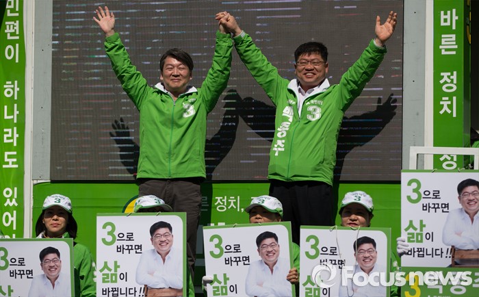 (안양=포커스뉴스) 안철수 국민의당 상임공동대표가 1일 오전 안양시 동안구 중앙시장에서 백종주 동안구갑 후보 지원 유세를 하고 있다.