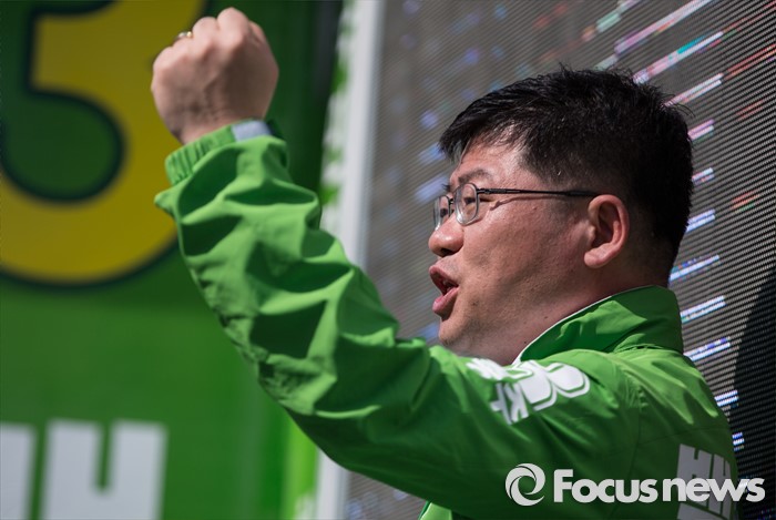 (안양=포커스뉴스) 백종주 국민의당 동안구갑 후보가 1일 오전 안양시 만안구 중앙시장에서 선거 유세를 하고 있다.