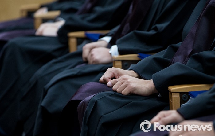 (서울=포커스뉴스) 1일 오전 서울 서초구 대법원 대강당에서 열린 신임 법관 임명식에 참석한 신임 법관들이 곧은 자세로 앉아 있다.