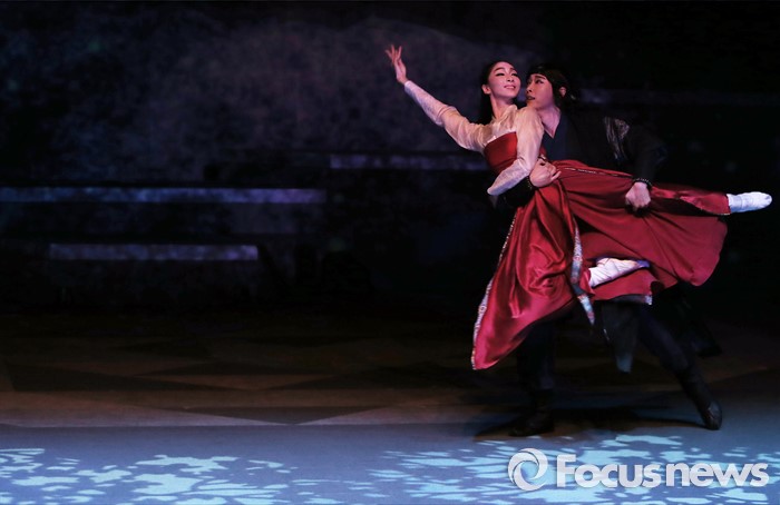 (서울=포커스뉴스) 1일 오후 서울 중구 정동극장에서 열린 2016 상설공연 '가온세상의 시작' 프레스콜 행사에 참여한 배우들이 주요 장면을 시연하고 있다.
