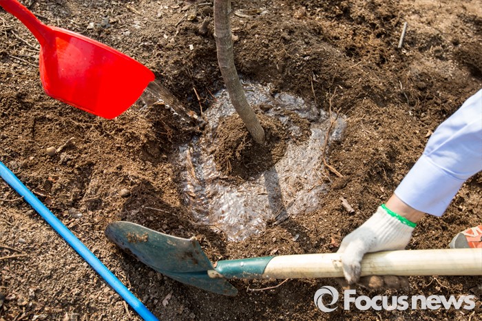 (서울=포커스뉴스) 1일 오후 서울 동대문구 배봉산에서 동대문구청 직원들이 식목일을 앞두고 나무를 심고 있다.