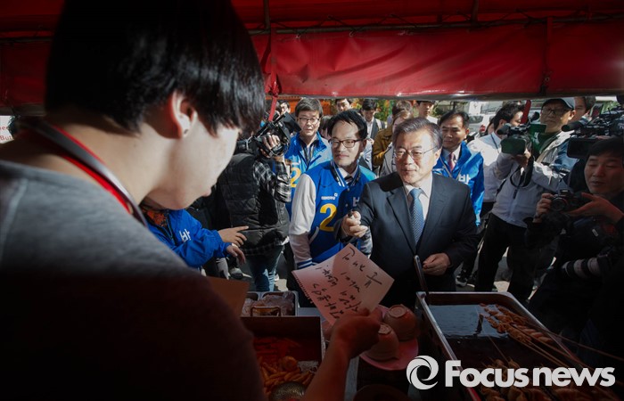 (서울=포커스뉴스) 1일 오후 문재인 전 더불어민주당 대표가 서울 은평구 역촌노인복지회관 인근에서 박주민 은평갑 후보와 함께 유세를 하고 있다.