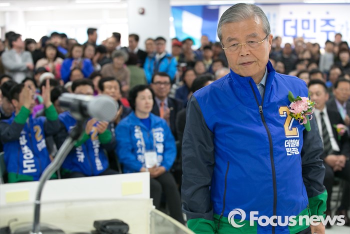 (익산=포커스뉴스) 김종인 더불어민주당 비대위 대표 겸 선대위원장이 1일 오후 한병도 전북 익산을 후보 선거사무소에서 열린 개소식에 참석해 축사를 위해 단상으로 향하고 있다.