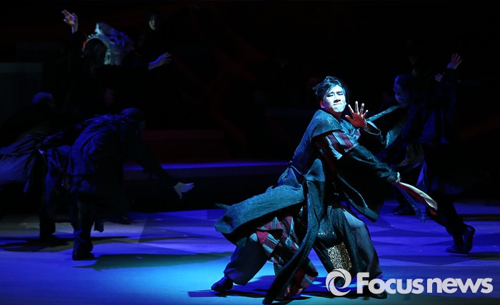 (서울=포커스뉴스) 1일 오후 서울 중구 정동극장에서 열린 2016 상설공연 '가온세상의 시작' 프레스콜 행사에 참여한 배우들이 주요 장면을 시연하고 있다.