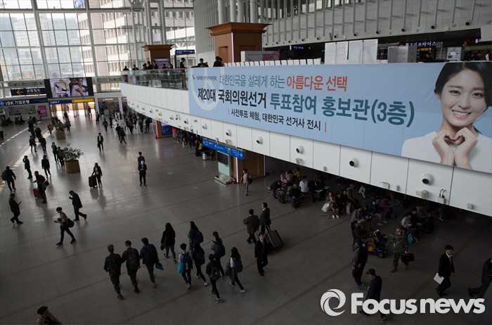 (서울=포커스뉴스) 1일 오후 서울 용산구 서울역사에 제20대 국회의원선거 투표참여 홍보관을 설치해 1일부터 6일까지 운영한다.