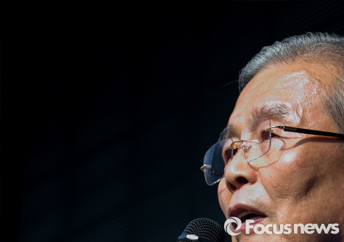 (완주=포커스뉴스) 1일 오후 전북 완주군 둔산공원 앞 사거리에서 김종인 더불어민주당 비대위 대표 겸 선대위원장이 안호영 완주·진안·무주·장수군 후보의 지지를 호소하고 있다.