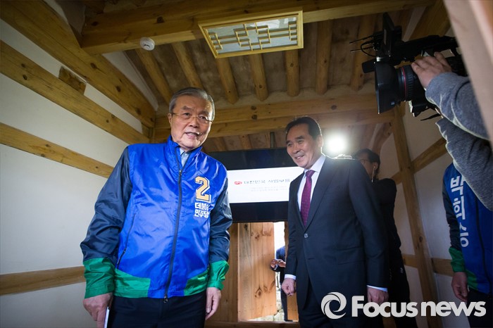 (순창=포커스뉴스) 김종인(왼쪽) 더불어민주당 비대위 대표 겸 선대위원장이 1일 오후 전북 순창군 가인 김병로 선생 생가를 방문해 관계자 설명을 들으며 내부를 둘러보고 있다.
