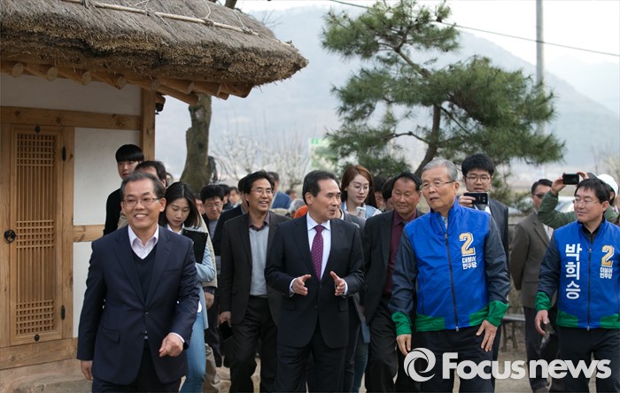 (순창=포커스뉴스) 김종인(가운데) 더불어민주당 비대위 대표 겸 선대위원장이 1일 오후 전북 순창군 가인 김병로 선생 생가를 방문해 박희승 남원·임실·순창 후보와 함께 둘러보고 있다.