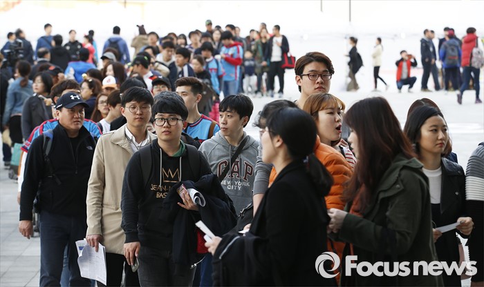 (서울=포커스뉴스) 1일 오후 서울 구로구 고척스카이돔에서 열린 2016 타이어뱅크 프로야구 개막전 넥센 히어로즈와 롯데 자이언츠 경기를 보기 위해 관중들이 입장을 기다리고 있다.