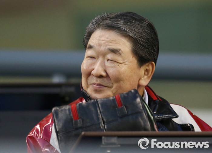 (서울=포커스뉴스) 1일 구본준 LG 구단주가 서울 잠실구장에서 열린 2016프로야구 개막전 한화-LG 경기를 관전하고 있다.