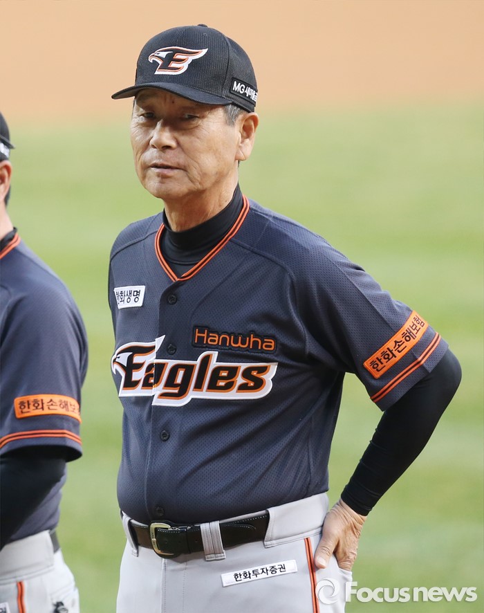 (서울=포커스뉴스) 1일 서울 잠실구장에서 열린 2016프로야구 개막전 한화-LG 경기에 앞서 열린 개막식에서 김성근 한화 감독이 선수 소개를 기다리고 있다.