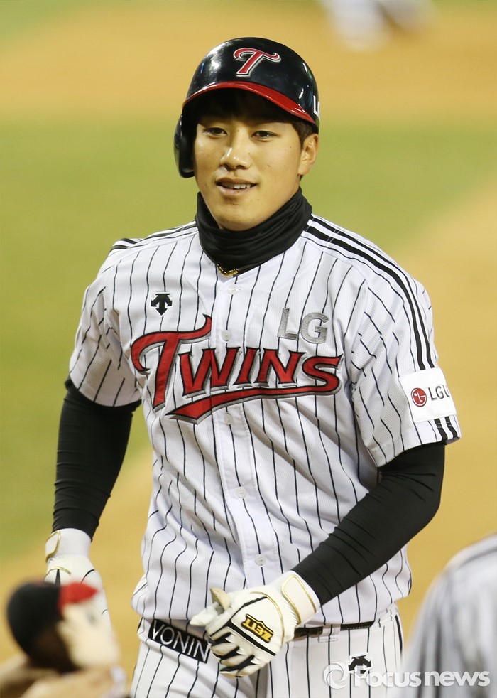 (서울=포커스뉴스) 1일 서울 잠실구장에서 열린 2016프로야구 개막전 한화-LG 경기에서 2회말 1사 1루에서 LG 이천웅이 우월 2점 홈런을 날리고 밝은 표정으로 홈인하고 있다.
