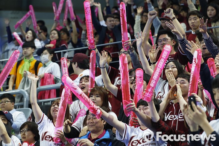(서울=포커스뉴스) 1일 오후 서울 구로구 고척스카이돔에서 열린 2016 타이어뱅크 프로야구 개막전 넥센 히어로즈와 롯데 자이언츠의 경기에서 관중들이 응원하고 있다.