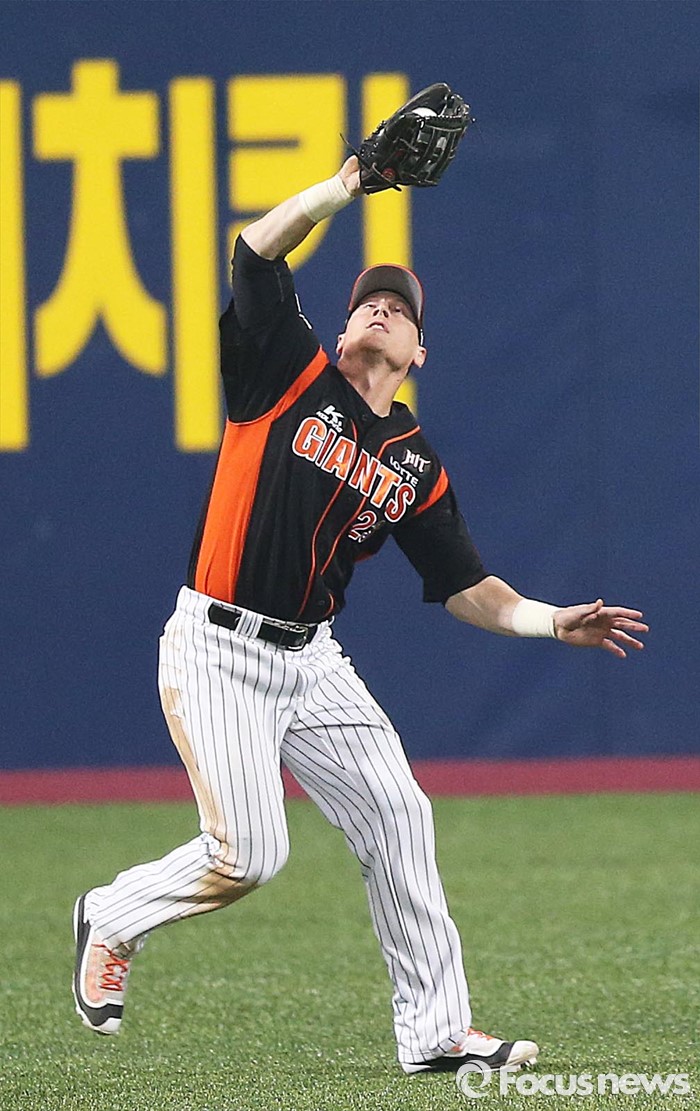 | △ 희생 플라이 잡는 롯데 아두치 |