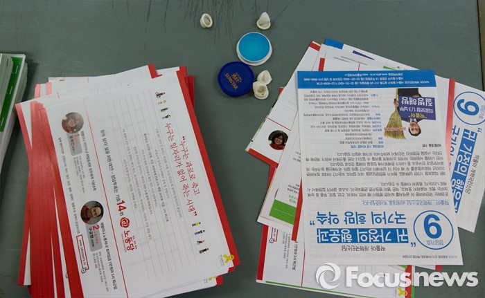 (서울=포커스뉴스) 2일 오후 서울 성북구 선거관리위원회에 가정으로 발송될 제20대 국회의원 선거 공보물과 작업도구들 놓여져 있다.