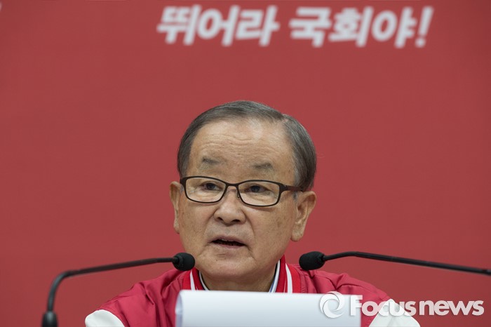 (서울=포커스뉴스) 강봉균 새누리당 공동선대위원장이 3일 오전 서울 영등포구 새누리당 당사에서 경제정책 3·4호 공약을 설명하고 있다.