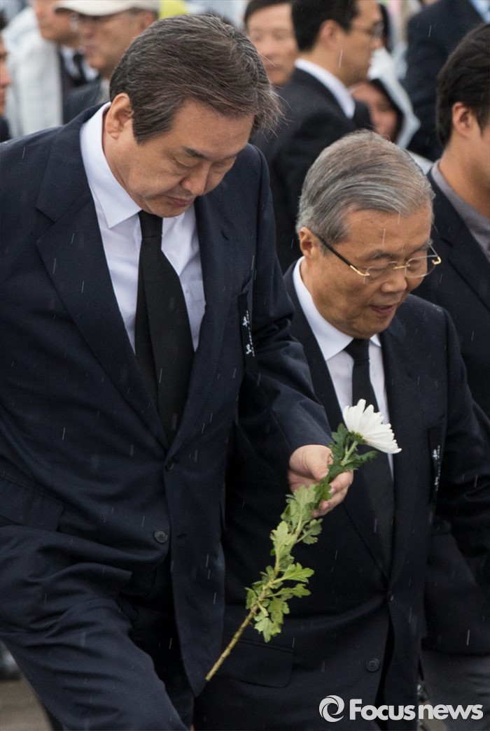 | △ 추모단 향하는 김무성-김종인 |