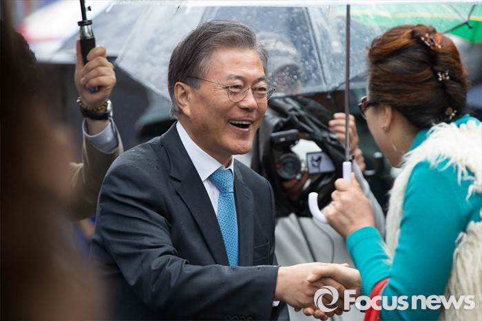 (서울=포커스뉴스) 선거운동이 시작되고 첫 주말을 맞은 3일 오후 문재인 전 더불어민주당 대표가 서울 동작구 남성시장에서 허동준 더불어민주당 동작을 후보와 합동유세를 하고 있다.