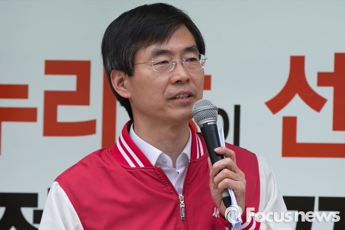 (부산=포커스뉴스) 조경태 새누리당 의원이 3일 오후 부산광역시 사상구 광장로의 한 대형마트 앞에서 손수조 사상구 후보 지원유세를 하고 있다.